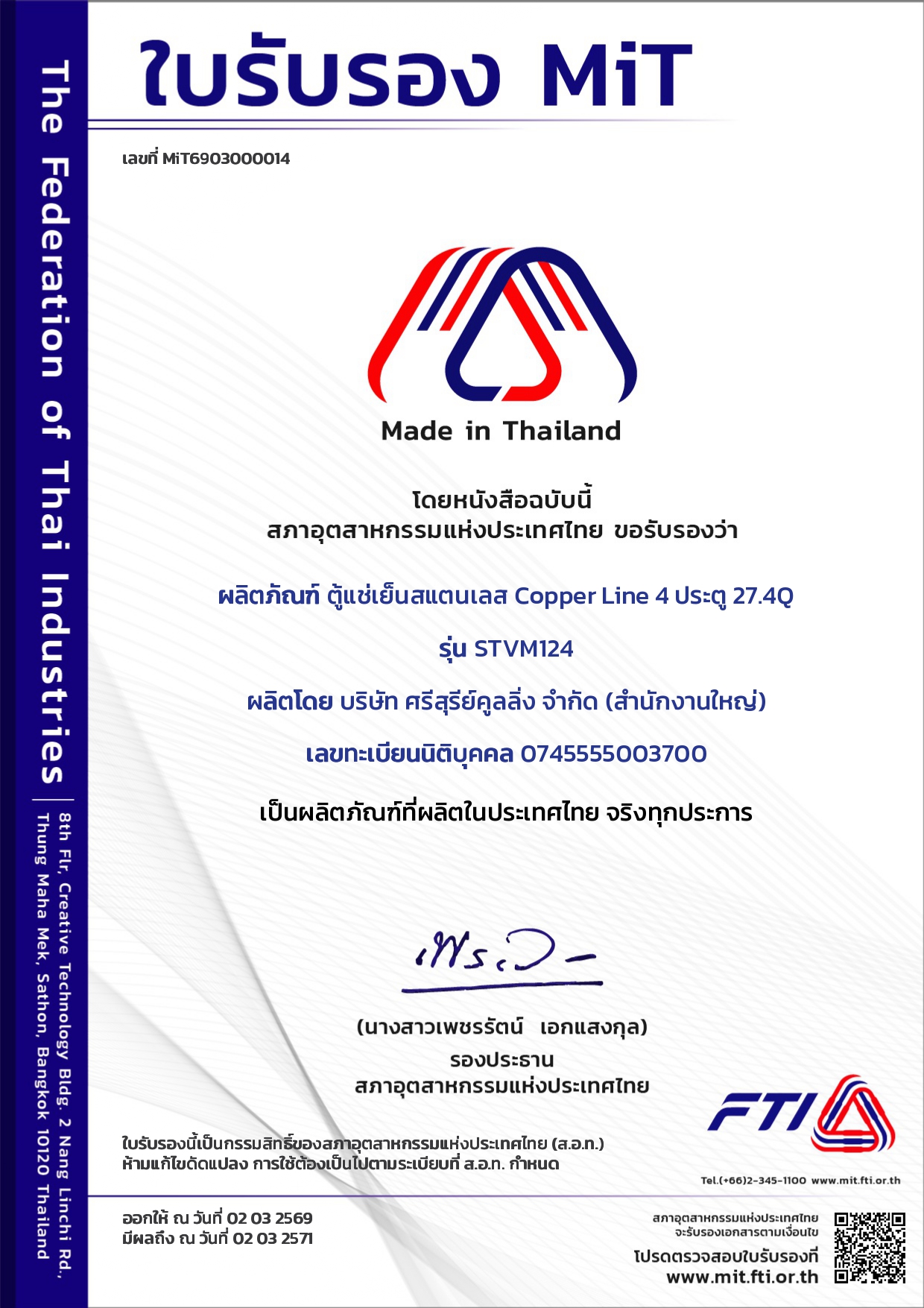 ใบรับรอง STVM124FT