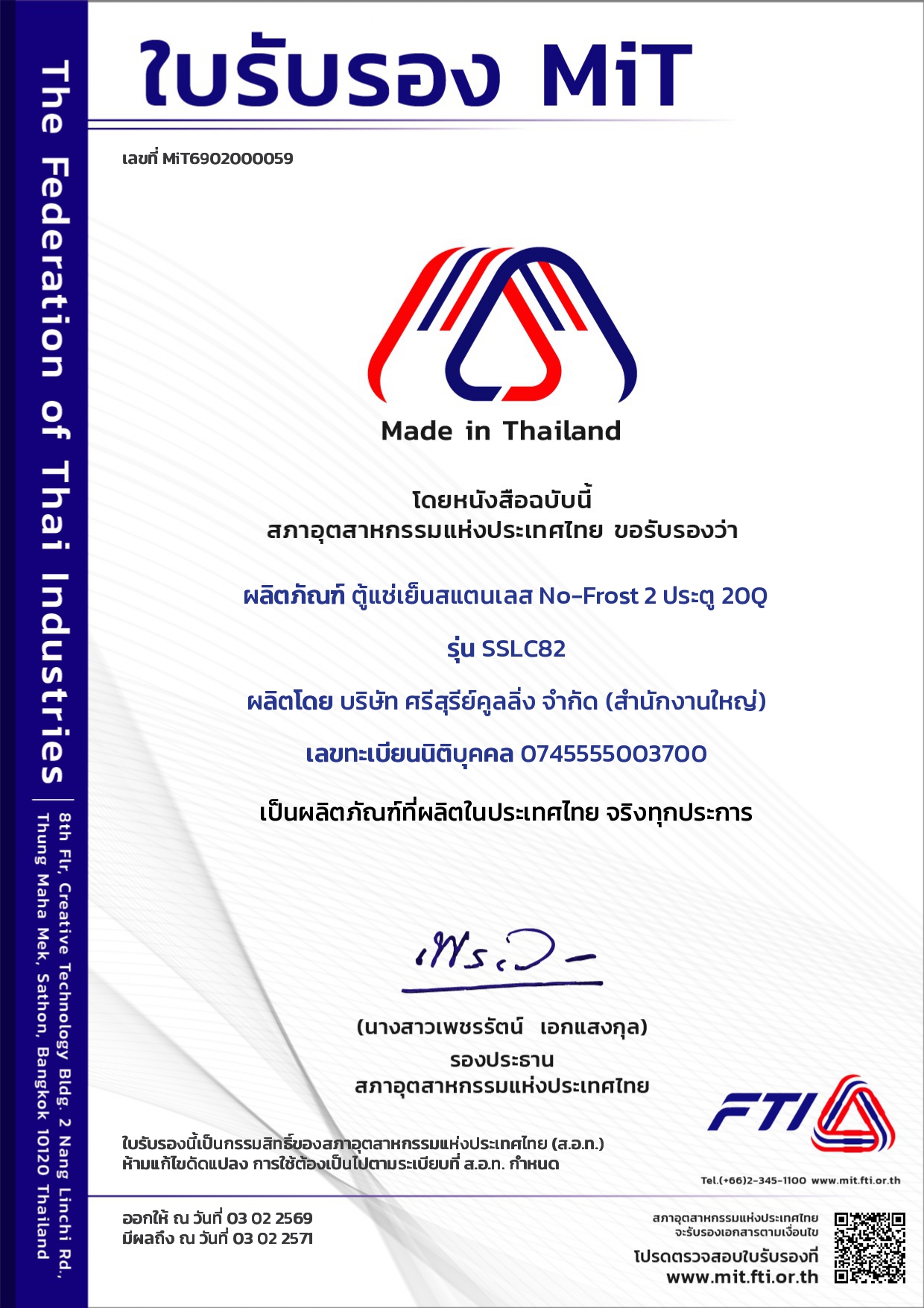 ใบรับรอง SL-183C-V1